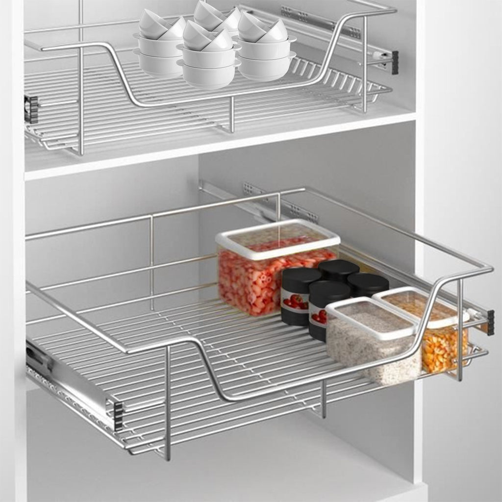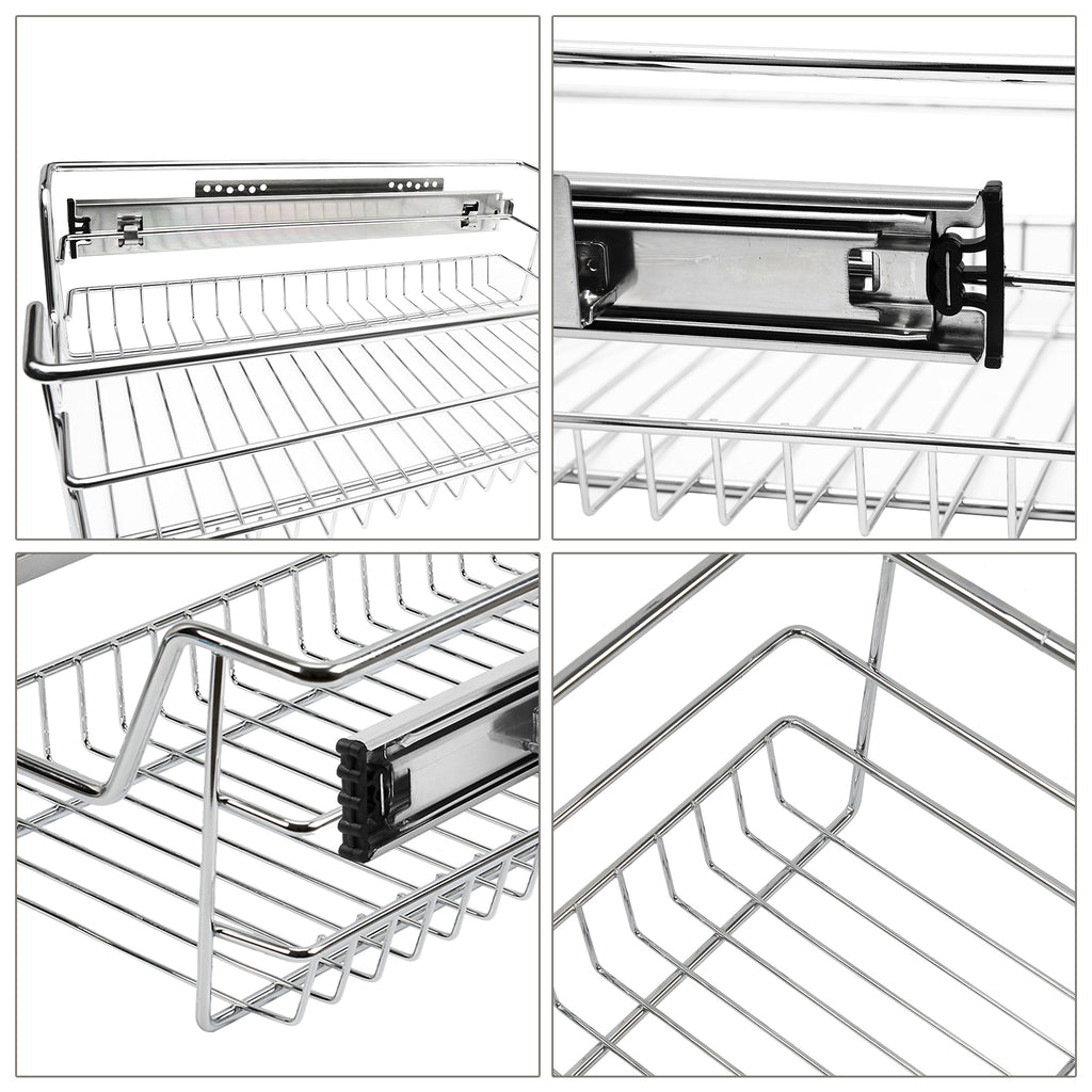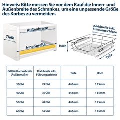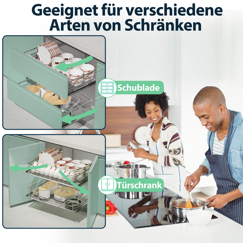 ✨【Vielseitig Einsetzbar】Zwei Installationsmethoden, geeignet für verschiedenen Schranktüren (Schublade & Türschrank). Die Außenabmessungen sind 30, 40, 50 und 60 cm breit und daher sehr kompatibel. Die ausziehbare Schublade ist der ideale Aufbewahrungsort, damit Sie den verfügbaren Platz optimal nutzen können. Sie passen zur Aufbewahrung von Geschirr, Gewürzen, Obst oder Gemüse usw.