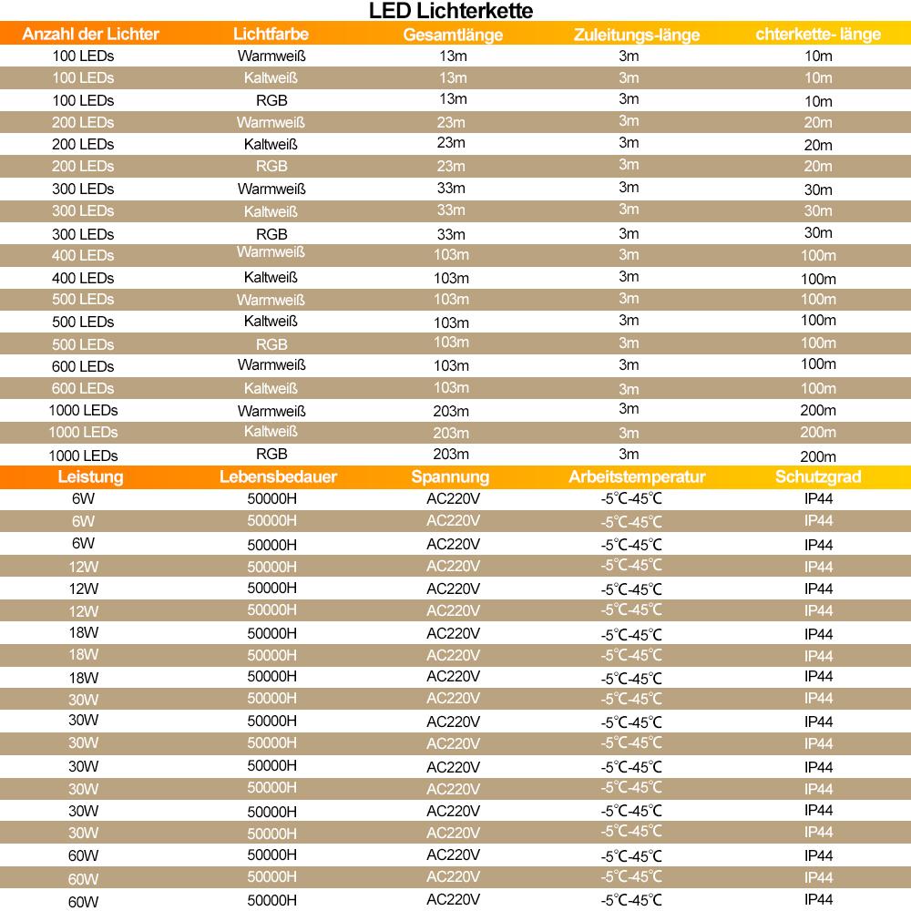 Lichterkettenlänge: 10/20/30/100/200 Meter