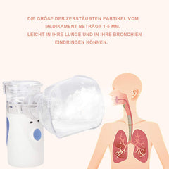 ✅ [Effiziente Zerstäubung direkt in den betroffenen Bereich] Der tragbare Zerstäuber zerstäubt die Partikel mit einer Partikelgröße von 1 bis 5 um, was besser ist als Ultraschallinhalatoren (Partikelgröße 3 bis 10 um) und Kompressorinhalatoren (Partikelgröße 3 bis 8 um), und kann die Lunge erreichen. Der Boden des Teils wird vollständig von den Alveolen und Bronchien absorbiert.
