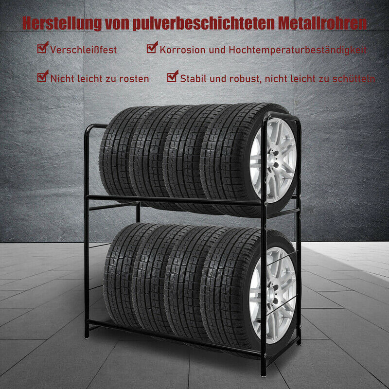 Mit diesem Reifenständer können Sie Reifen für Autos oder Motorräder bequem aufbewahren, Reifenverformungen verhindern, Platz in der Garage, Werkstatt oder im Keller sparen und Ihre Garage ordentlich halten.