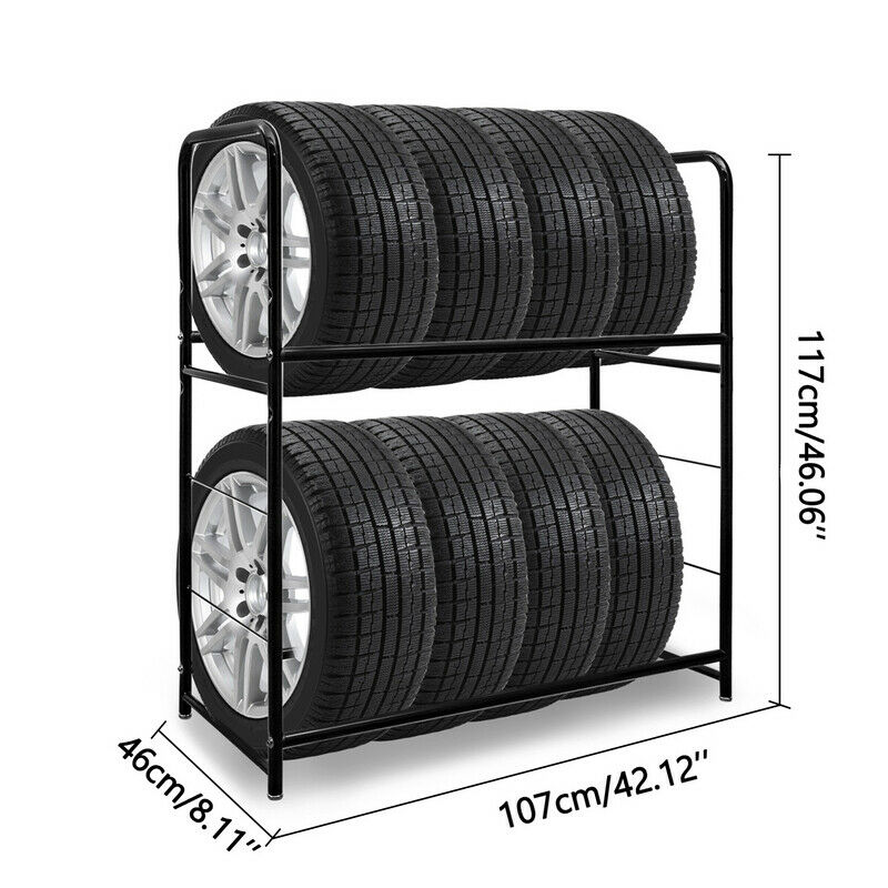 ✅ [Hochwertig] Reifenregalabmessungen: 107x 46 x 117 cm(LxBxH), maximale Belastung: 180 kg, geeignet für Reifenbreiten bis 240 mm.