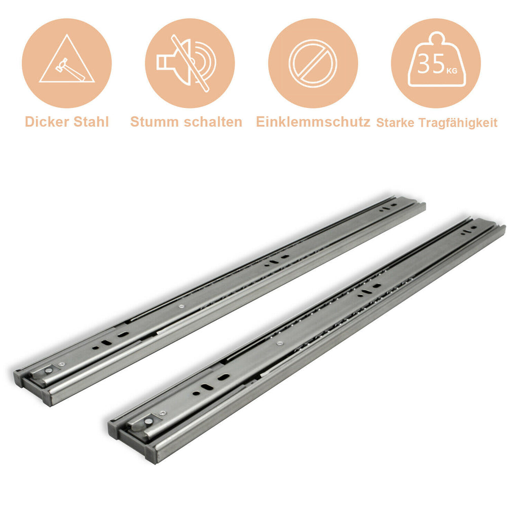 Die dreiteiligen Schubladenauszüge können vollständig ausgezogen werden, leise und reibunglos, das dicke Material ist robust und langlebig, die Schubladenauszüge verfügen über Selbsteinzug und Dämpfung, um Einklemmen zu verhindern, geeignet für Schlafzimmern, Kinderzimmern, Wohnzimmern, Küchen, Badezimmern und Büromöbeln , ideal für Schubladeninstallationen.