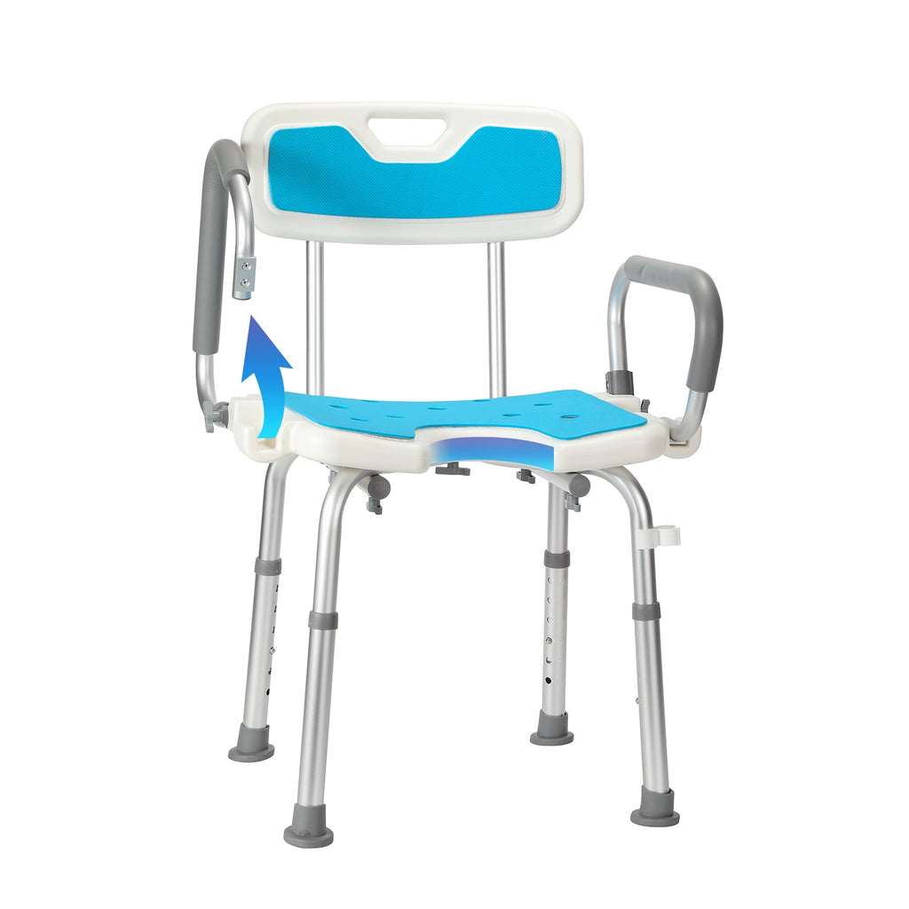 【Höhenverstellbar】Hochklappbare Armlehnen. Dieser Badhocker hat eine Höhenverriegelung, so dass Sie die Höhe selbst einstellen können 72 -86 cm.