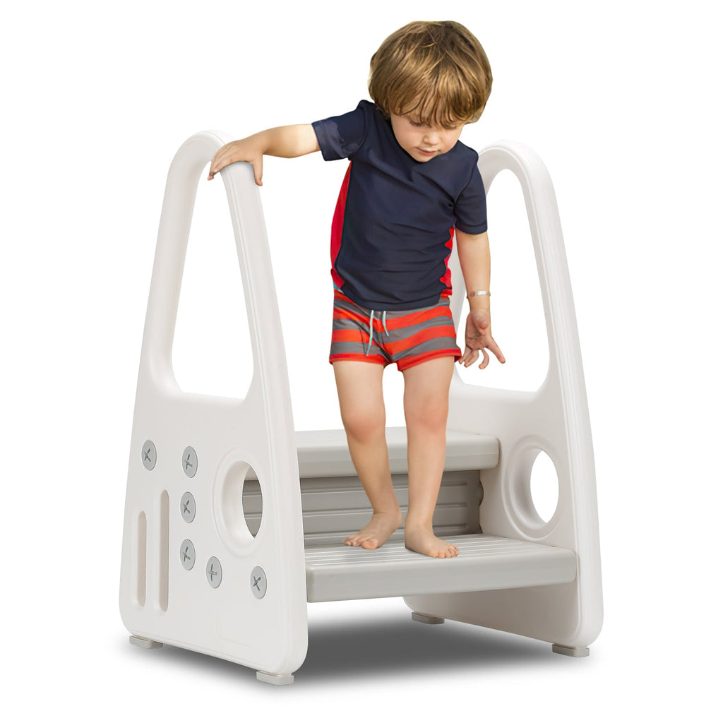 【Sicher und robust】Die stabile zweistufiger tritthocker struktur, die rutschfesten Pedale und die handhaben erhöhen die Stabilität und Sicherheit, die dem Kind größtmögliche Sicherheit geben und das Treppensteigen erleichtern.